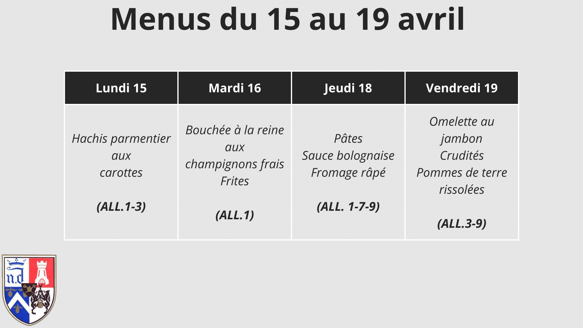 Les numéros correspondants aux allergènes sont indiqués sous chaque menu. Le Salad’Bar Le repas chaud L’espace « service » L’ancien réfectoire Le nouveau réfectoire